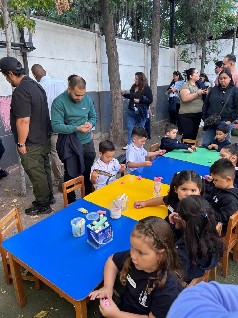 - Expresión Artística: El patio se llenó de color con estaciones de modelado con plasticina, coloreado de láminas y dibujos con tizas directamente sobre el suelo.
